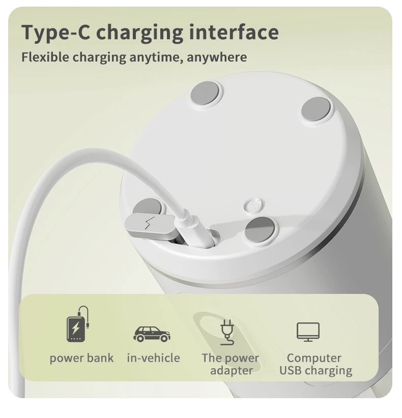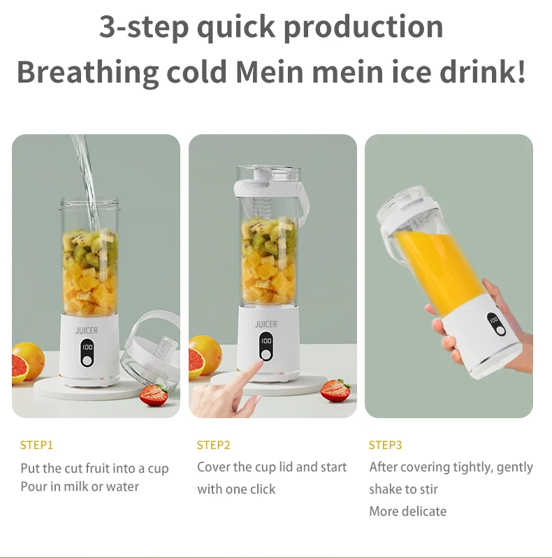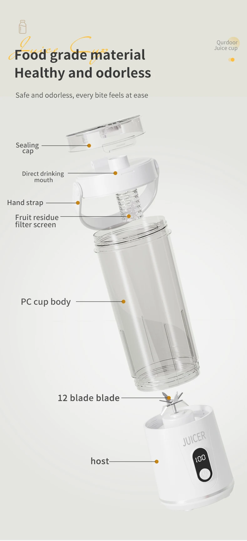 • Compact and lightweight design, perfect for busy mornings, outdoor activities, office, gym, or travel — enjoy fresh juice anytime, anywhere.
