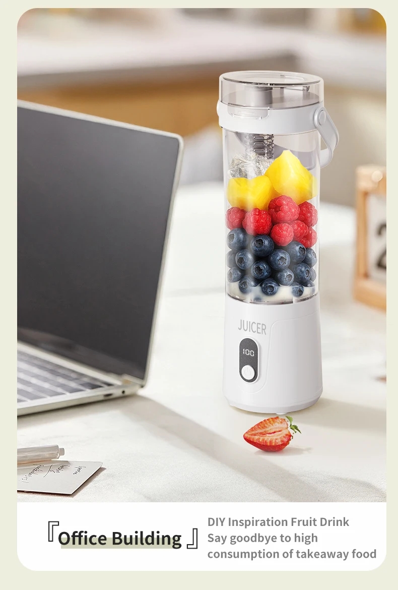 • Enhance your daily routine—whether at home, in the office, or on outdoor adventures—with this versatile portable electric juicer.
